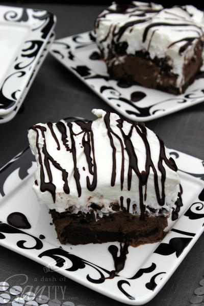 To assemble Chocolate Amore Cake layer the following in a 9x13 serving pan.
