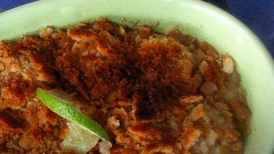 Evenly place the scallops in an oven-proof casserole and cover with hand-crushed Ritz crackers. Top with melted butter and bake for 20 minutes.